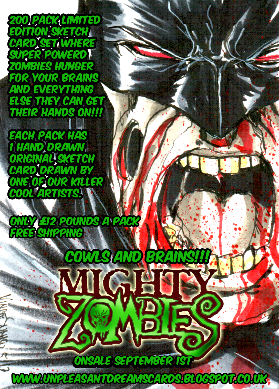 With every 3 packs orderd you get an official Mighty Zombies Blank Sketchcard which you can add to your collection, draw on yourself or use to commission any artist you wish to add to your MightyZombies collection, how awesome is that