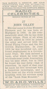 I have some more Cigarette cards that could be classed as an error that was corrected. In this instance the cards come from the John Player set titled Aircraft of the Royal Air Force published in 1938 which an adhesive back so that they could be stuck in a special albums, the 2 card are Nos 45 & 46 and show a bi-plane flying upside down which was not in error however the text on the back did not mention that the images were intentional. Following comments received Player's issued amended cards with the backs now including the word "inverted" beneath the aircraft name. [IMG:left] [/IMG][IMG:left] [/IMG][IMG:left] [/IMG][IMG:left] [/IMG] [IMG:left] [/IMG] [IMG:left] [/IMG] The next card I class as a variant rather than an error. It is card no.27 from the W.D. & H.O. Wills set of Radio Celebrities 2nd series also with an adhesive back and features John Tilley. This set was issued in July 1935 although it was prepared for issue in 1934 according to the in-house magazine of W.D. & H.O. Wills and shortly after issue John Tilley died. An amended card was issued but only the back was changed in its title and with an additional line of text added at the end. [IMG:left] [/IMG][IMG:left] [/IMG] [IMG:left] [/IMG] regards John ____________________ | |||